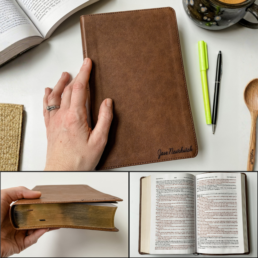 Choose from multiple Bible translations and styles, select a beautiful engraved cover design, and personalize it with a name or meaningful verse. Each Bible is custom engraved to order and carefully crafted to create a lasting keepsake.