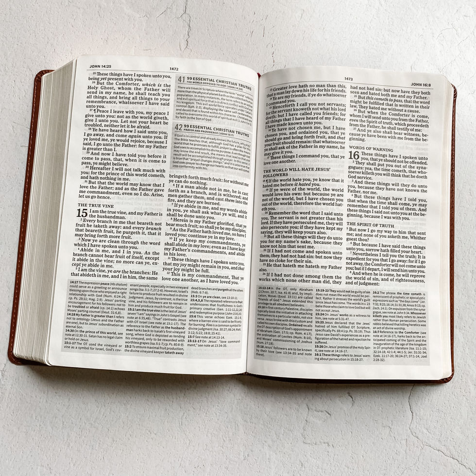 This is a KJV Study Bible. Hand lettered and laser engraved - choose your favorite verse or the favorite verse of a loved one, include a name or a special date, and more. The fully customizable cover makes this Bible a one of a kind gift to treasure for years to come.