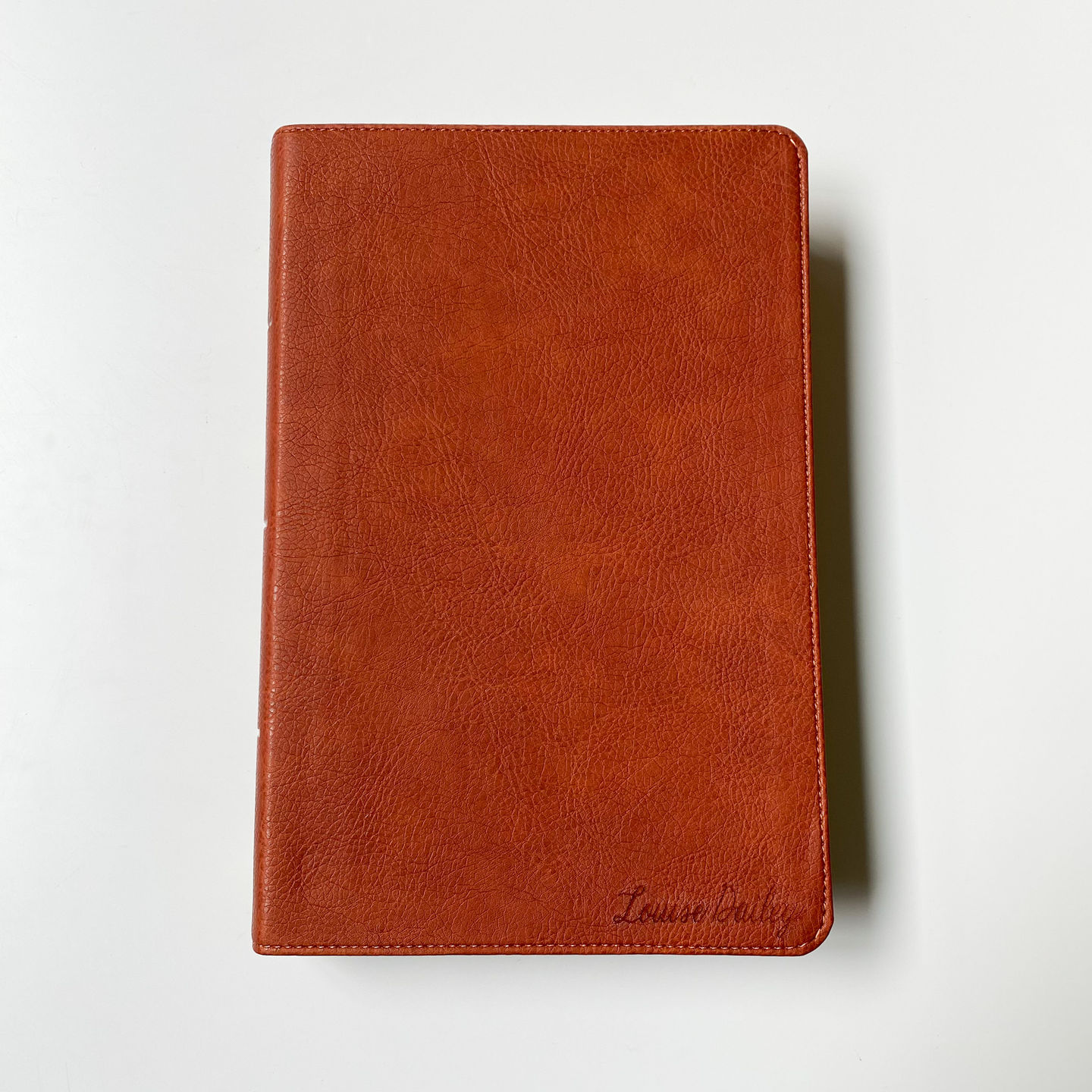 This is brown NASB Large Print Reference Bible. Your purchase includes the ability to customize with a personalized, hand lettered name engraved on the lower right corner of the front cover.