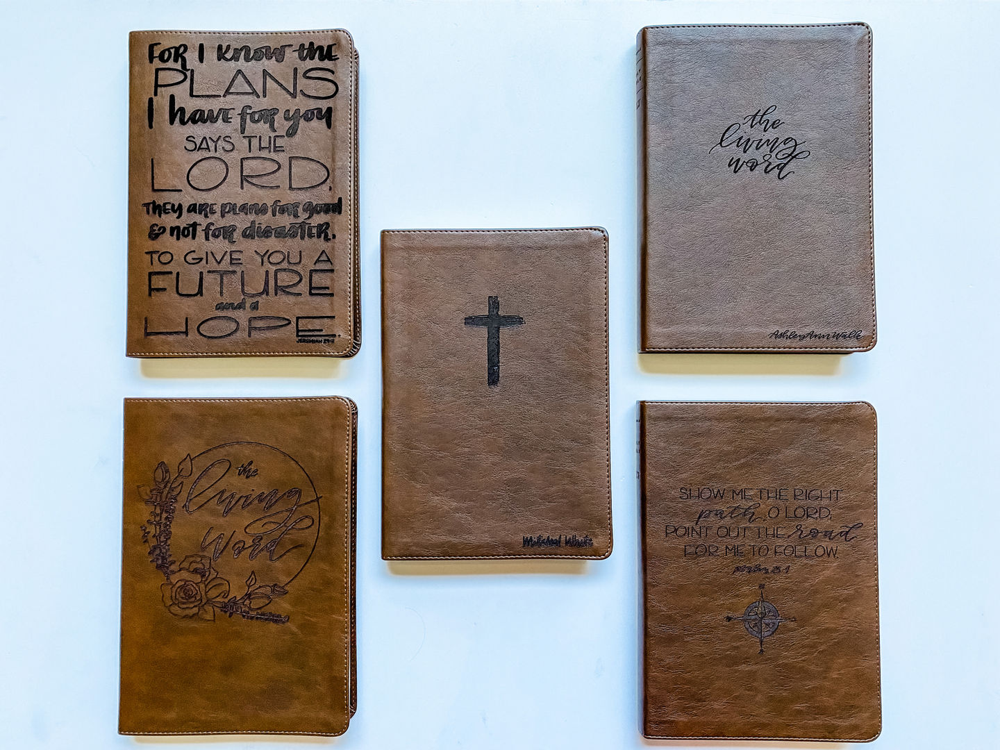 Hand lettered and laser engraved Bible - choose your favorite verse or the favorite verse of a loved one, include a name or a special date. The fully customizable cover makes this Bible a one of a kind gift to treasure for years to come.
